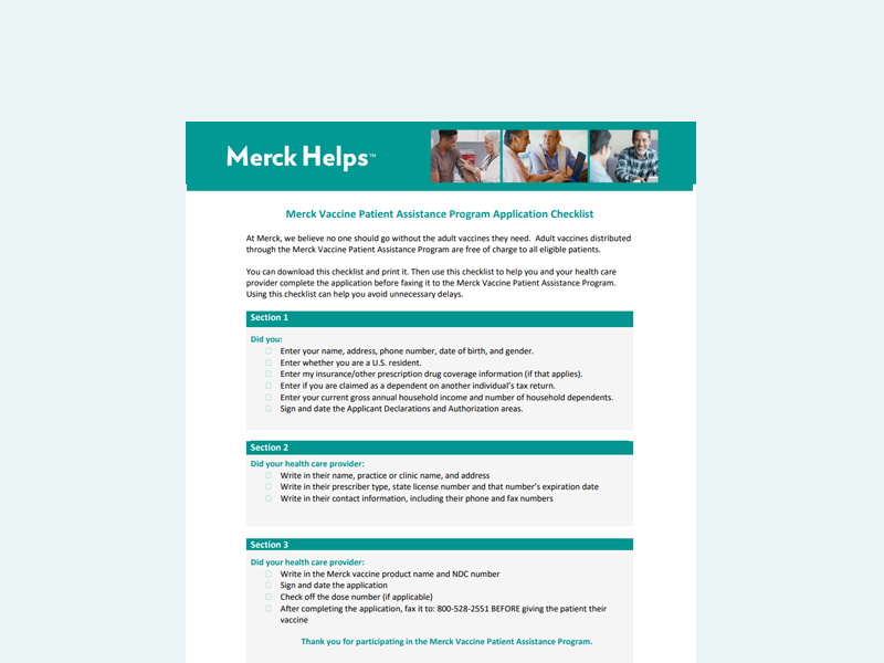 Merck Vaccine Patient Assistance Enrollment Form Checklist